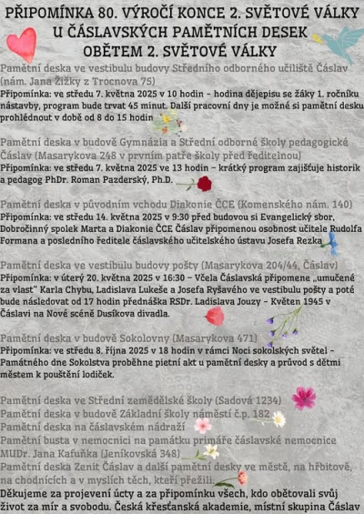 Připomínka 80. výročí konce 2. Světové války u Čáslavských pamětních desek obětem 2. Světové války