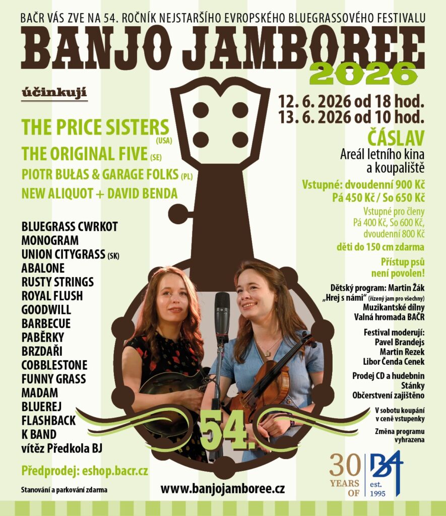 54. ročník unikátního a nejstaršího evropského bluegrassového festivalu je tady! Jedinečná hudba, zahraniční i tuzemští interpreti, skvělá atmosféra, co má vibe, parádní zázemí, stanové městečko v lesoparku, pohodoví lidé, občerstvení a sobotní plavání v ceně.