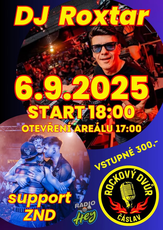 Rockový dvůr Čáslav Vás zve 6.9. 2025 od 18:00 hodin na DJ Roxtar.