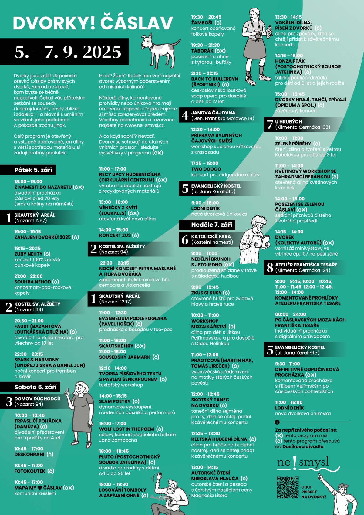 Čekají vás přátelská setkání se sousedy i kolemjdoucími, hosty zblízka i zdaleka a hlavně s uměním ve všech jeho podobách. A pokaždé trochu jinak.