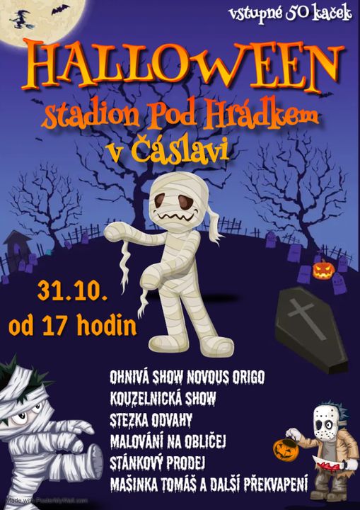 Tradiční strašidelný podvečer z dílny FK Čáslav startuje na stadionu Pod Hrádkem v Čáslavi ve čtvrtek 31. října 2024 v 17 hodin!