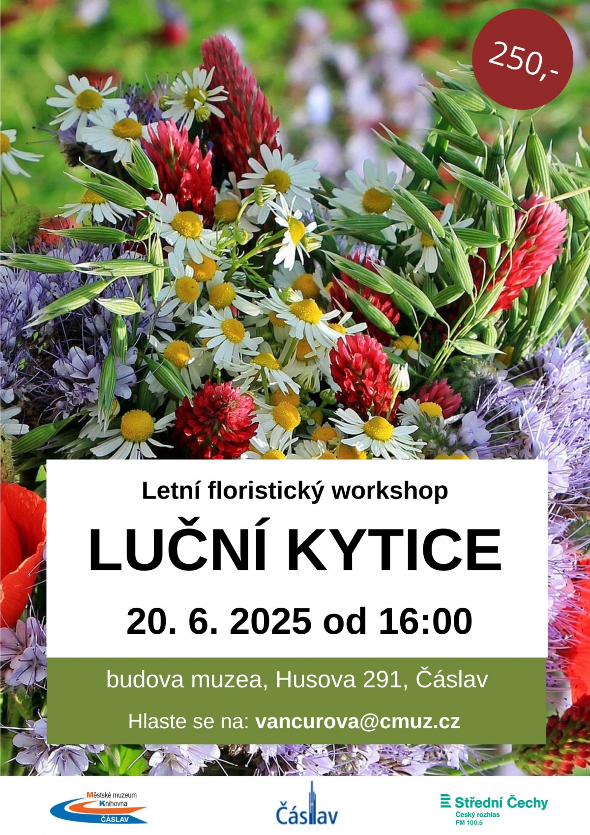 Letní floristický workshop Luční kytice 20.6. 2025 od 16:00 hod, budova muzea, Husova 291, Čáslav.