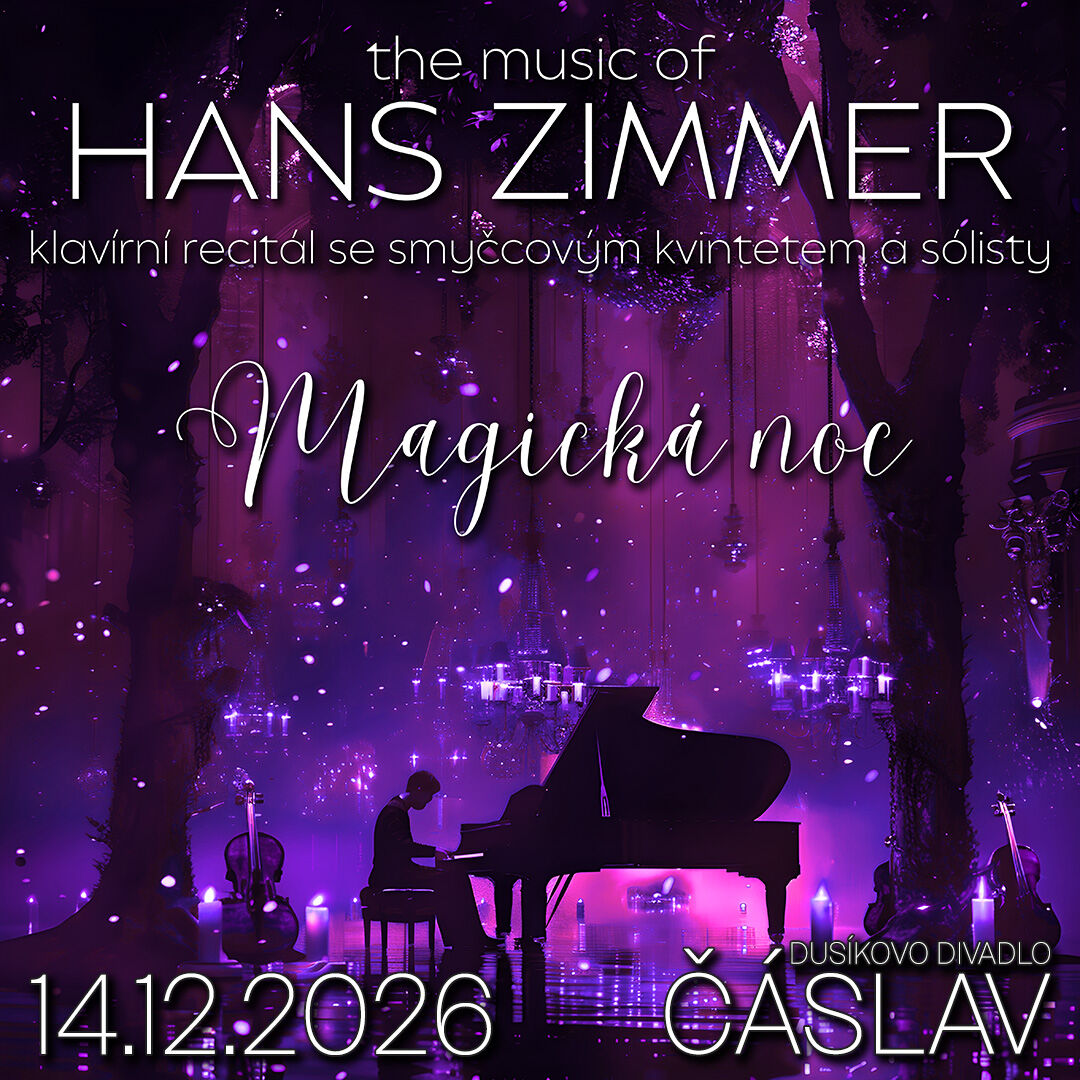 Dusíkovo divadlo zve na jedinečný večer plný světoznámé filmové hudby Hanse Zimmera v podání klavírního recitálu se smyčcovým kvintetem a sólisty. Dechberoucí bude nejen hudební vystoupení, ale celá atmosféra, která prostoupí večer.