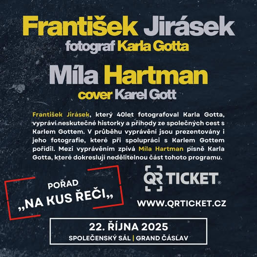 Srdečně Vás zveme 22.10 2025, na unikátní vzpomínkový večer věnovaný legendě české hudby – Karlovi Gottovi.