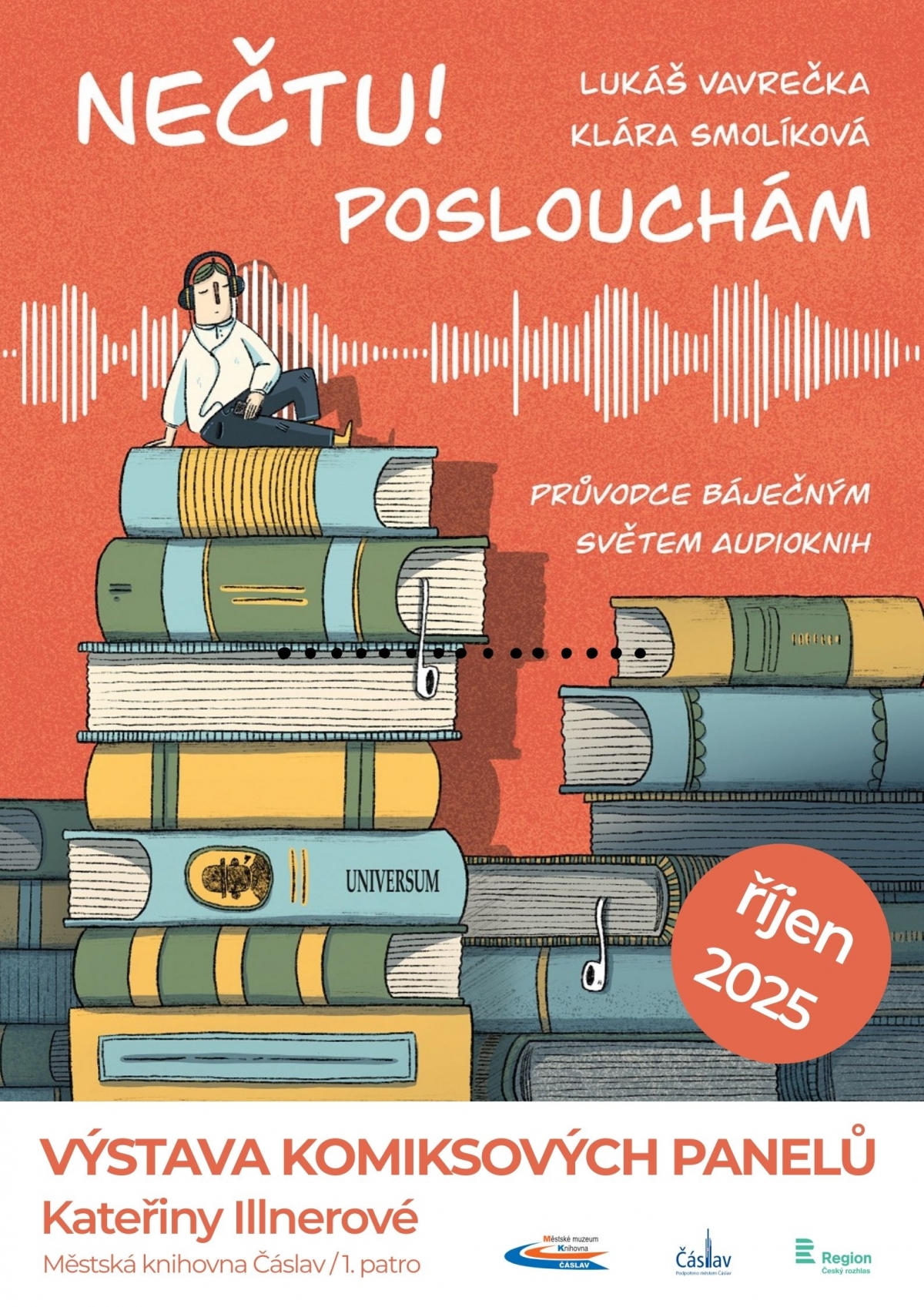Městské muzeum a knihovna Čáslav zvou všechny zájemce na výstavu s názvem „Nečtu! Poslouchám“, která se uskuteční v prostorách knihovny v průběhu 6.-12. října 2025. Výstava je připravena podle knihy Nečtu! Poslouchám – Průvodce báječným světem audioknih a představuje fenomén audioknih prostřednictvím komiksových panelů.