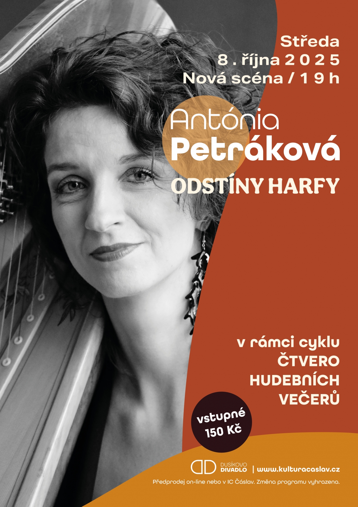 V rámci cyklu ČTVERO HUDEBNÍCH VEČERŮ se můžete těšit 8.10. 2025 od 19:00 hod na Odstíny harfy - Antónie Petráková.