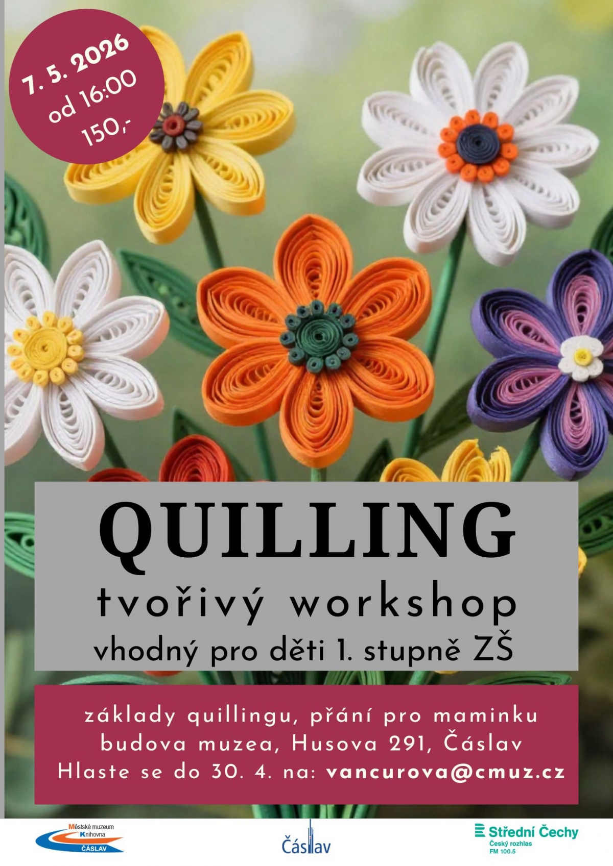 Městské muzeum Čáslav zve na tvořivý workshop, kde se naučíte základy quillingu a vytvoříte přání ke Dni matek. Workshop je vhodný pro žáky 1. stupně ZŠ.