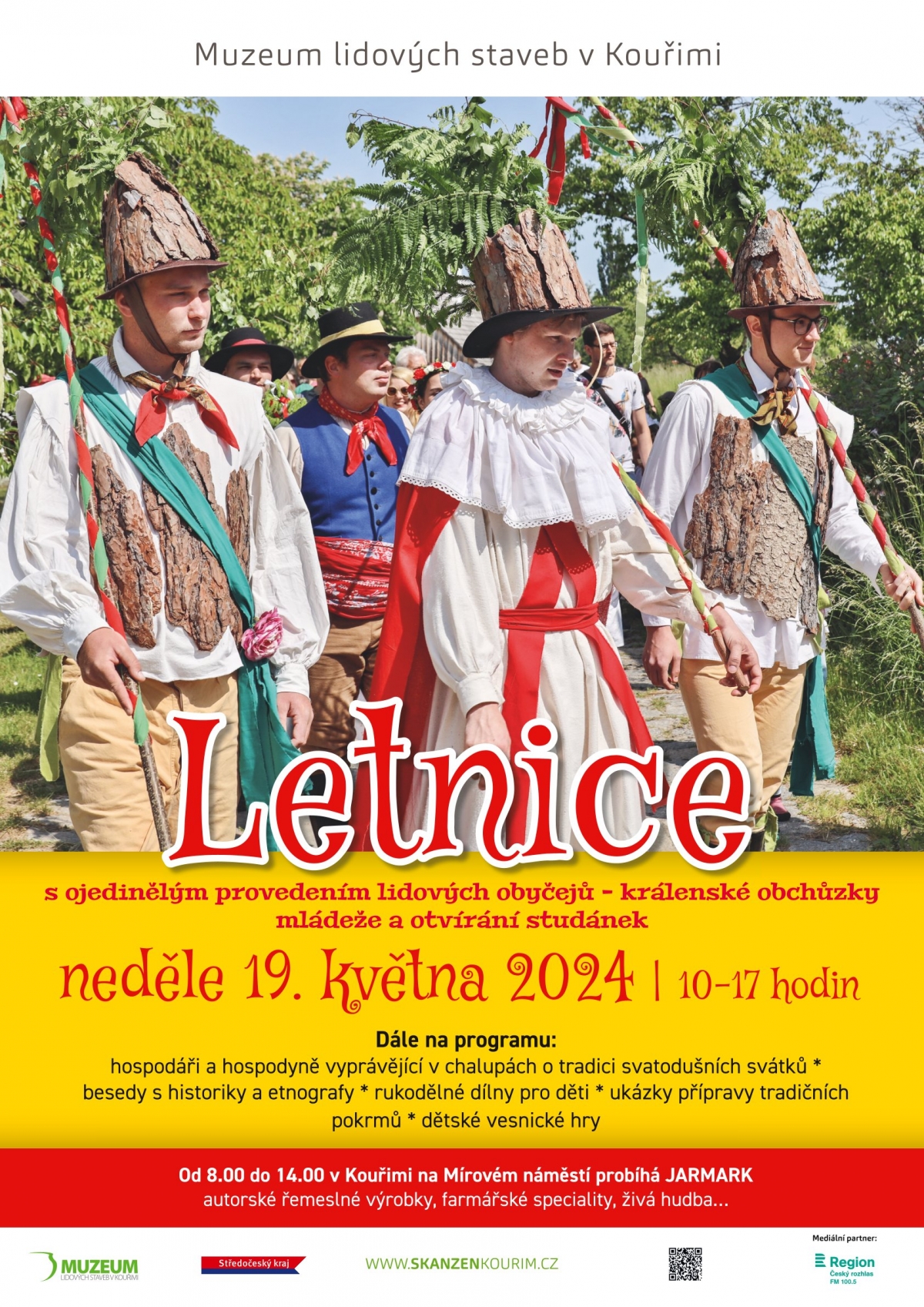 V neděli 19. května 2024 od 10 do 17 hodin uvede Muzeum lidových staveb v Kouřimi národopisný pořad Letnice. Slavnost připomene dnes již zapomenuté lidové obyčeje se vztahem k Svatodušním svátkům - otvírání studánek a králenskou obchůzku mládeže.