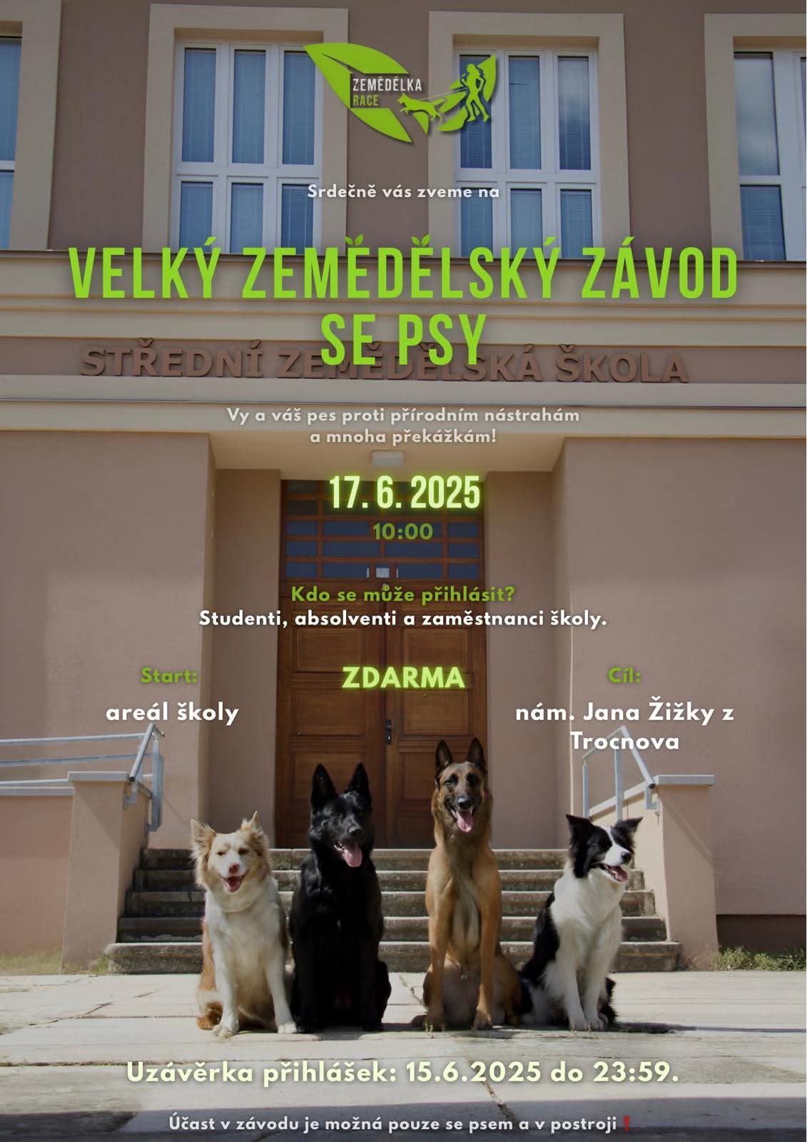 Střední zemědělská škola Čáslav pořádá 17.6. 2025 od 10:00 hodin Velký zemědělský závod se psy.