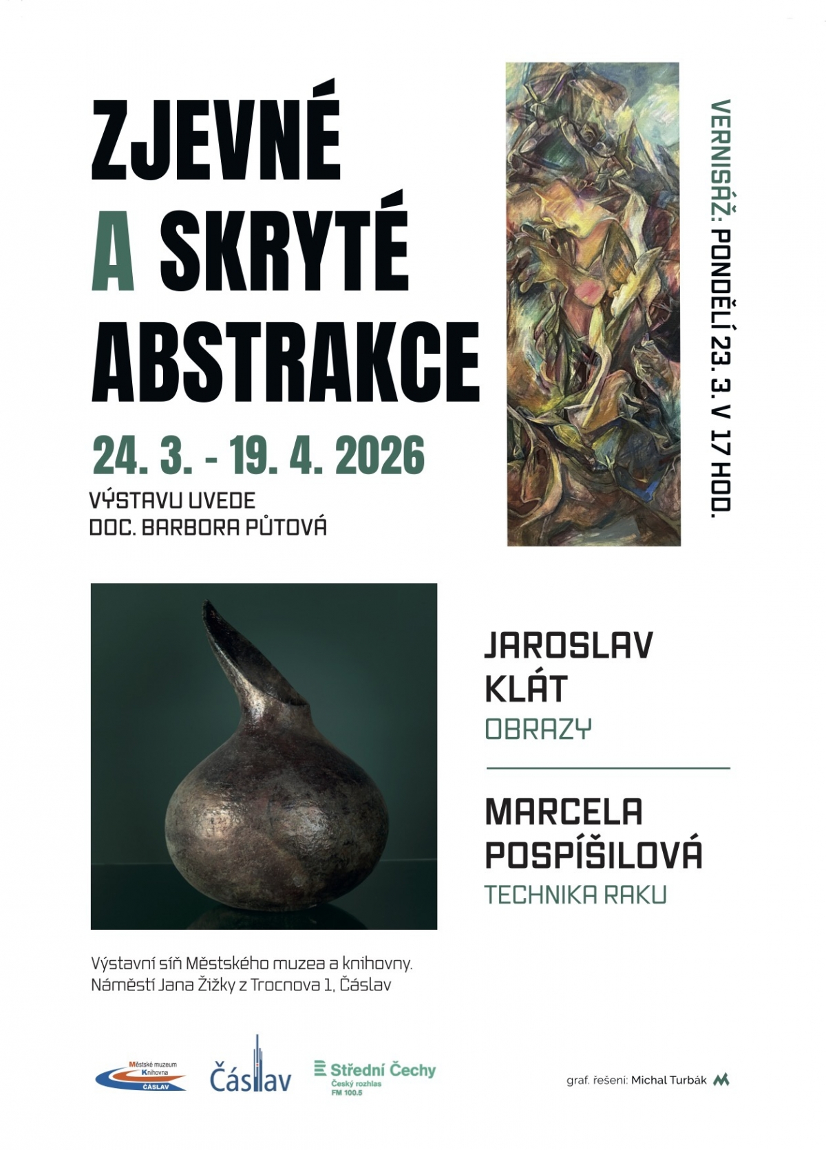 Městské muzeum a knihovna Čáslav zvou na výstavu umělců Jaroslava Kláta s jeho obrazy a Marcely Pospíšilové, která představí techniku raku. Výstavě bude předcházet 23. 3. od 17:00 vernisáž a uvede ji Doc. Barbora Půtová.